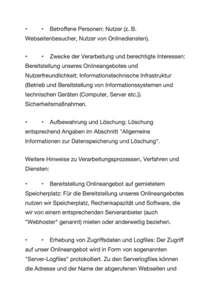 Die nachfolgende Übersicht fasst die Arten der verarbeiteten Daten und die Zwecke ihrer Verarbeitung zusammen und verweist auf die betroffenen Personen.